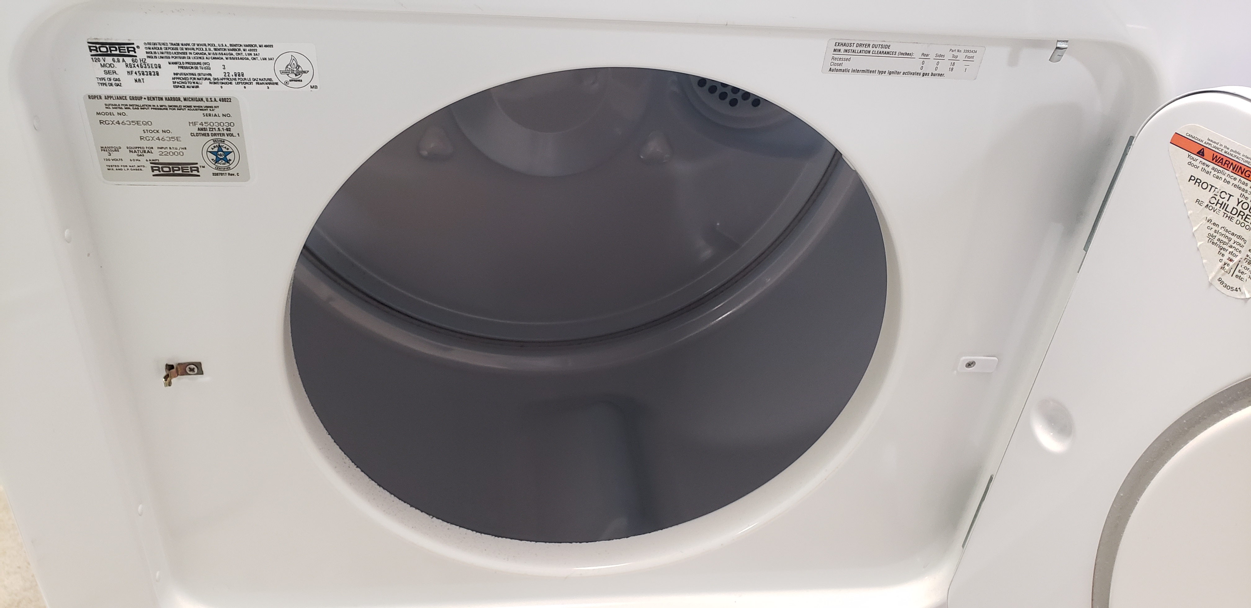 Roper gas dryer